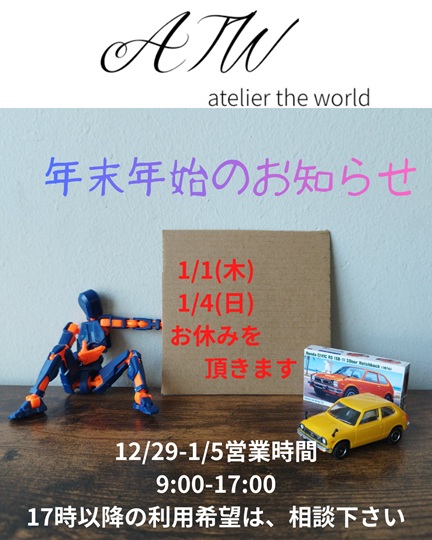 1/1(木)、1/4(日)お休みをいただきます